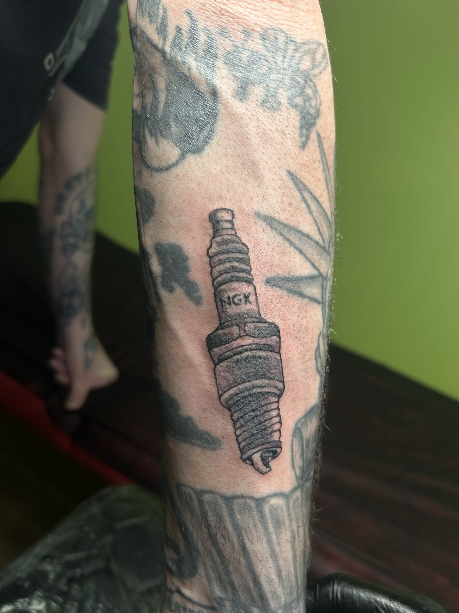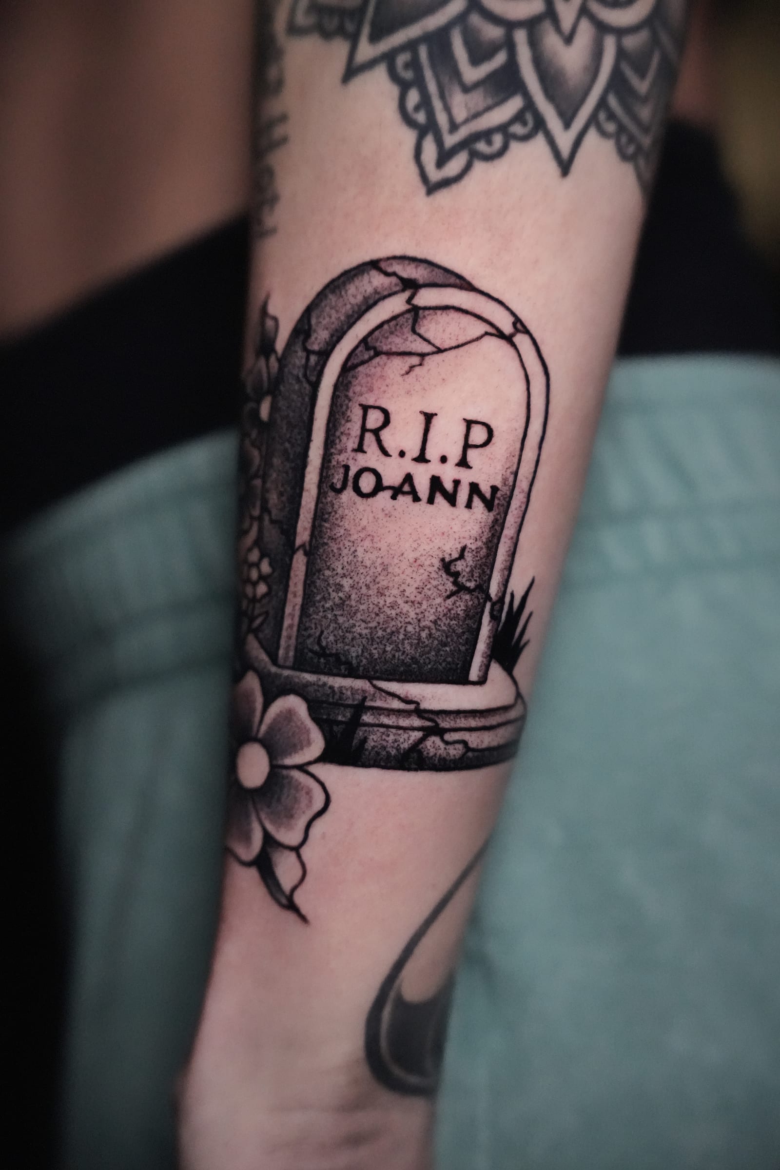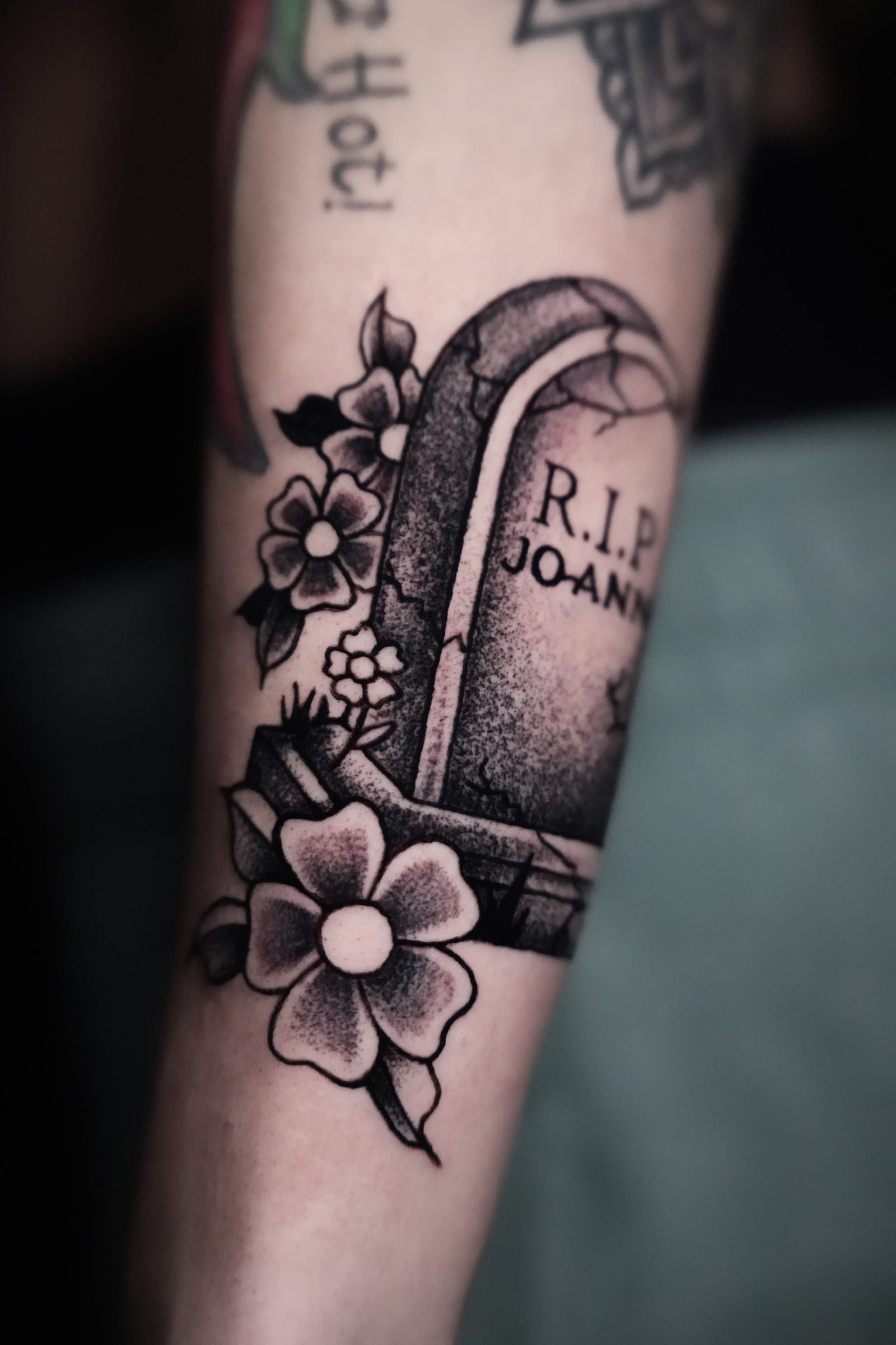 Her style leans toward blackwork and illustrative tattooing, often featuring bold outlines paired with smooth shading techniques that add depth without overpowering the design. This balance allows her tattoos to stand out while remaining refined and wearable over time.
